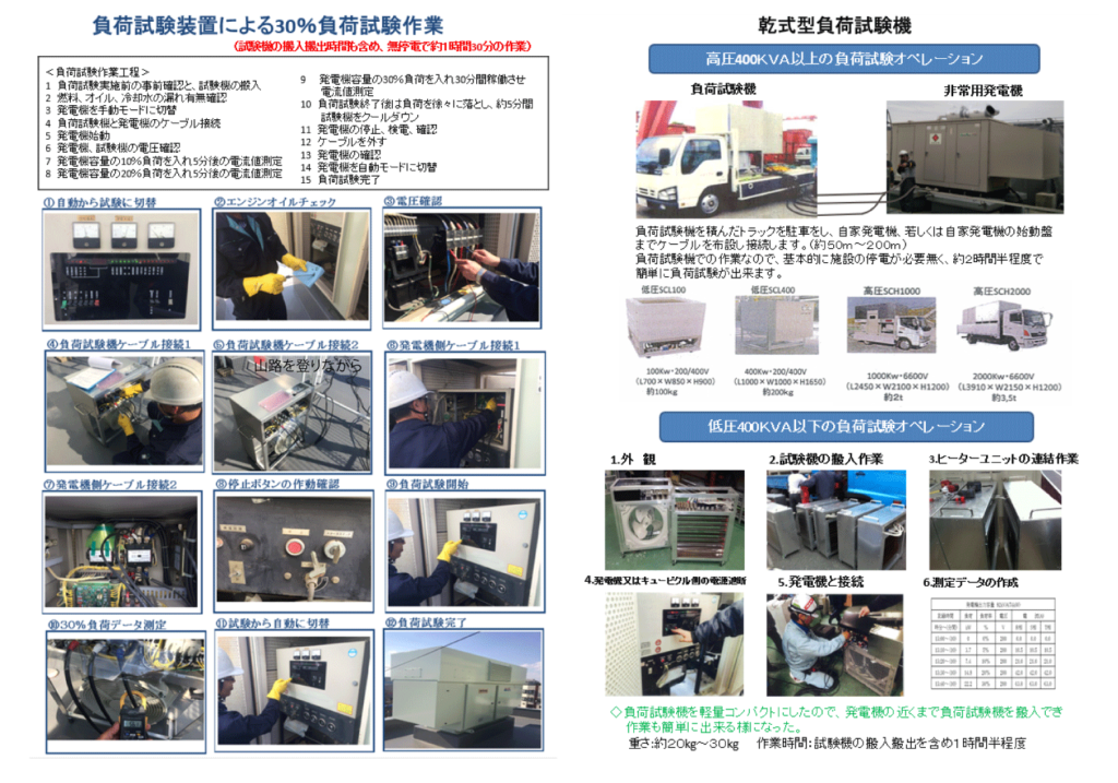 負荷運転は、消防法で義務付けられておりますが、30%以上の負荷運転は、 下記の点検要領となります。